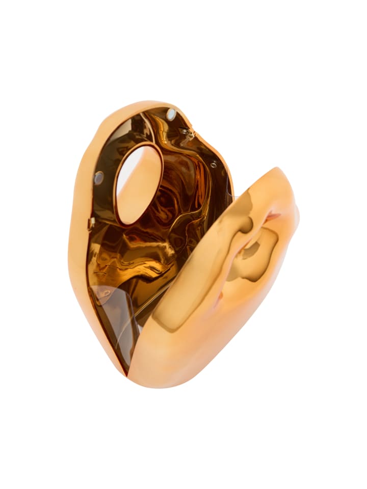 Эта скульптурная композиция может похвастаться гладкой, органической формой с округлым корпусом, сужающимся к основанию. Овальное отверстие сверху служит ручкой или декоративным элементом. Его полированная поверхность прекрасно отражает свет, подчеркивая его современный и минималистский дизайн. Идеально подходит для вечеринок, поставляется с дополнительной цепочкой для универсальности.