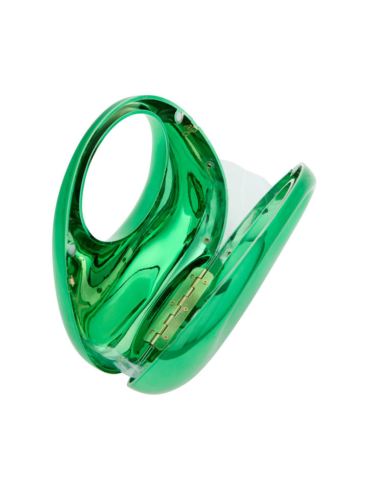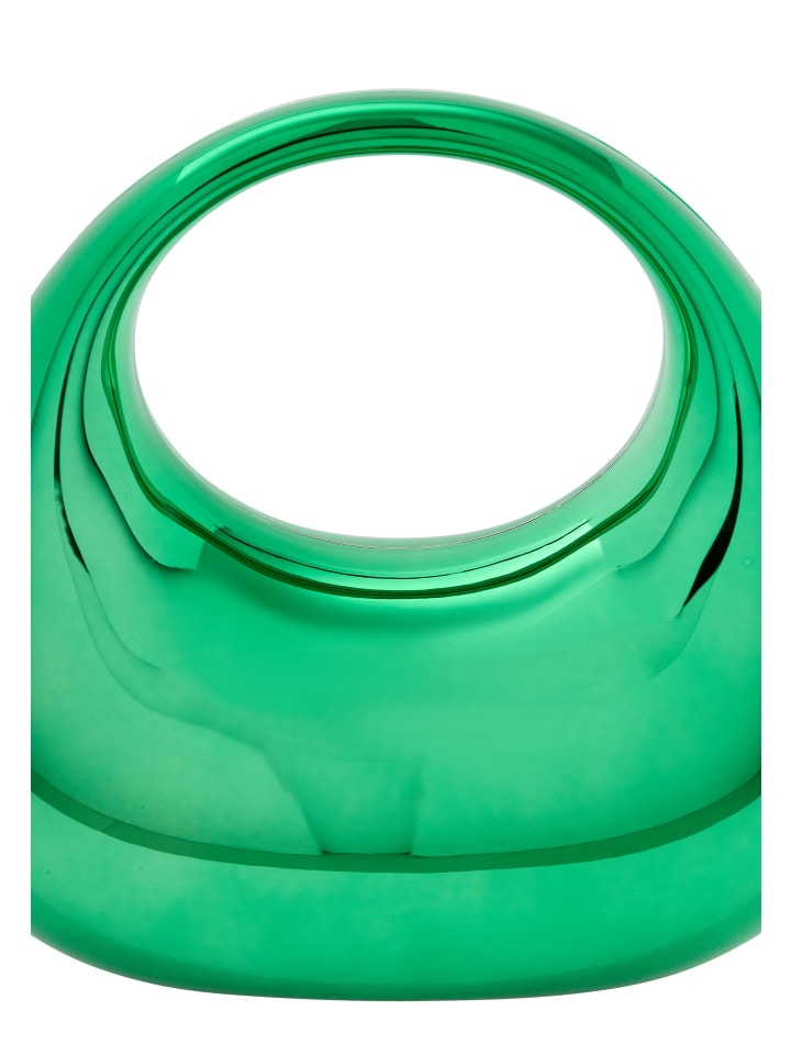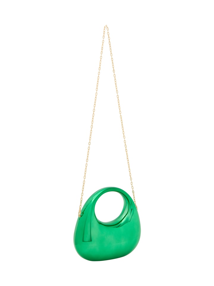Откройте для себя эту стильную сумочку с гладкой, округлой формой. Выдающееся круглое отверстие обрамлено слегка закругленным , создавая органический дизайн, который излучает гармонию. Его глянцевая поверхность прекрасно отражает свет. Благодаря дополнительной цепочке для универсальности и однотонному узору без деталей, он идеально подходит для вечеринок.
