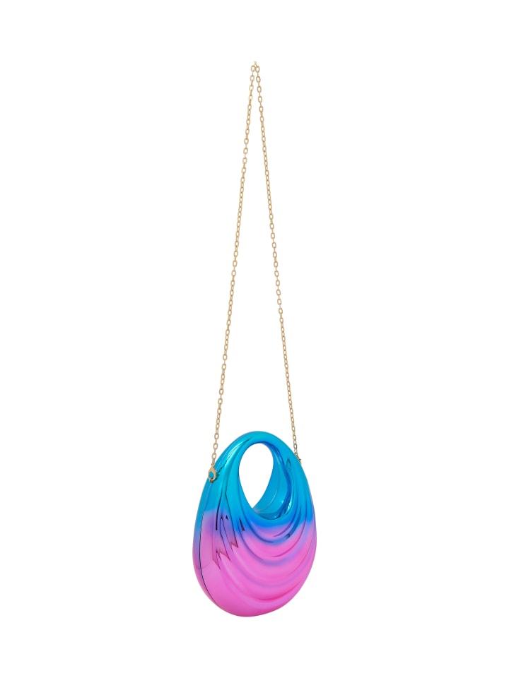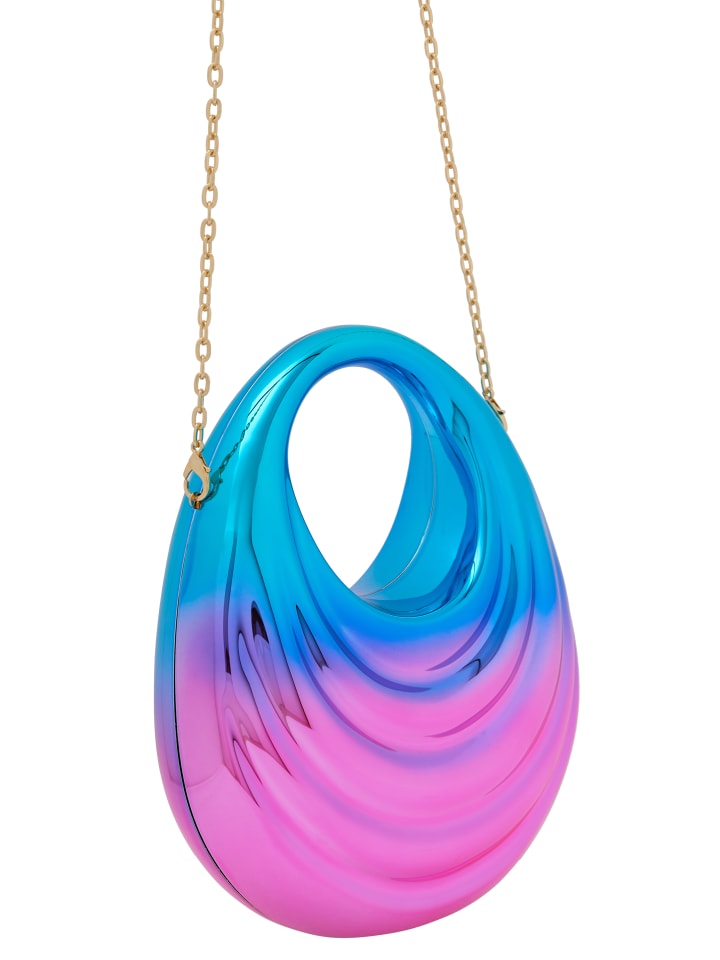 Эта стильная сумочка имеет гладкий, округлый дизайн, напоминающий декоративную чашу. Благодаря однотонному узору и отсутствию деталей она универсальна для любого праздничного случая. Дополнительная цепочка позволяет легко носить сумку, а декоративная застежка добавляет очарования. Эта модель идеально подходит в качестве выразительного аксессуара или для того, чтобы без усилий подчеркнуть ваш образ.