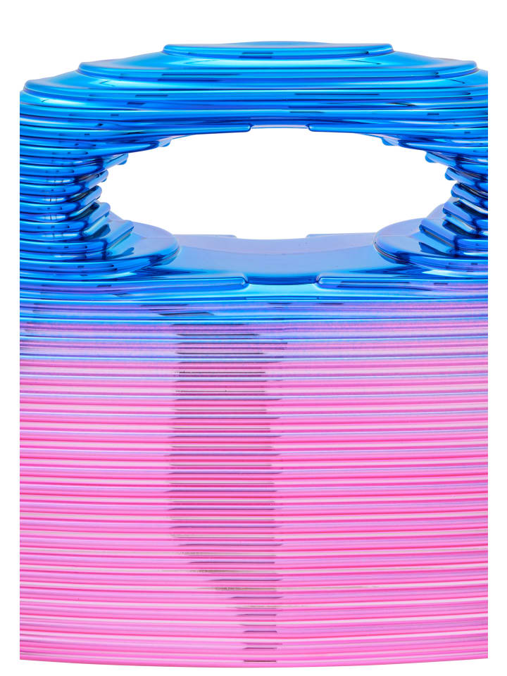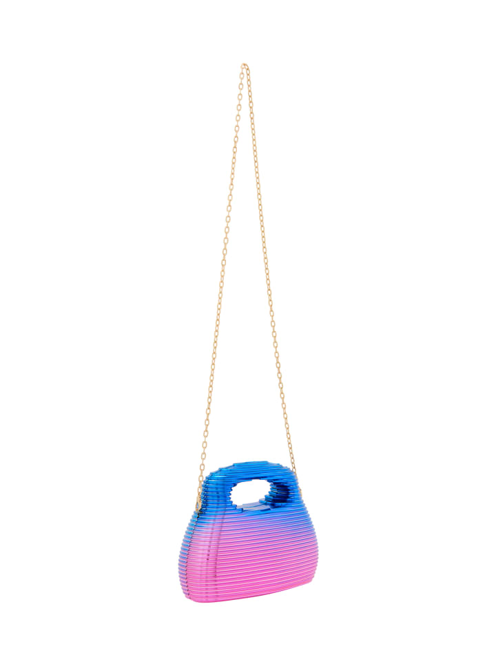 Подчеркните свой стиль с помощью этой скульптурной сумки с простым цветным узором и без деталей. Ее округлый корпус сужается для устойчивости, а встроенная ручка обеспечивает удобный захват. Декоративная застежка добавляет изюминку дизайну. Вместительное внутреннее пространство надежно удерживает предметы первой необходимости, что делает ее идеальной для любого праздничного случая. Дополнительная цепочка повышает универсальность.