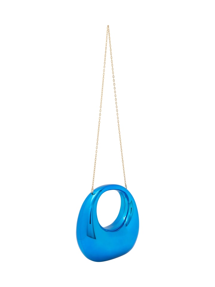 Поднимите свой праздничный ансамбль с помощью этой стильной сумочки, демонстрирующей гладкий, округлый дизайн и полый центр. Глянцевая отделка улавливает свет, добавляя глубины ее однотонному узору. Благодаря декоративной застежке для изящества она идеально подходит для любого случая. Кроме того, дополнительная цепочка обеспечивает универсальность для всех ваших потребностей в стиле.