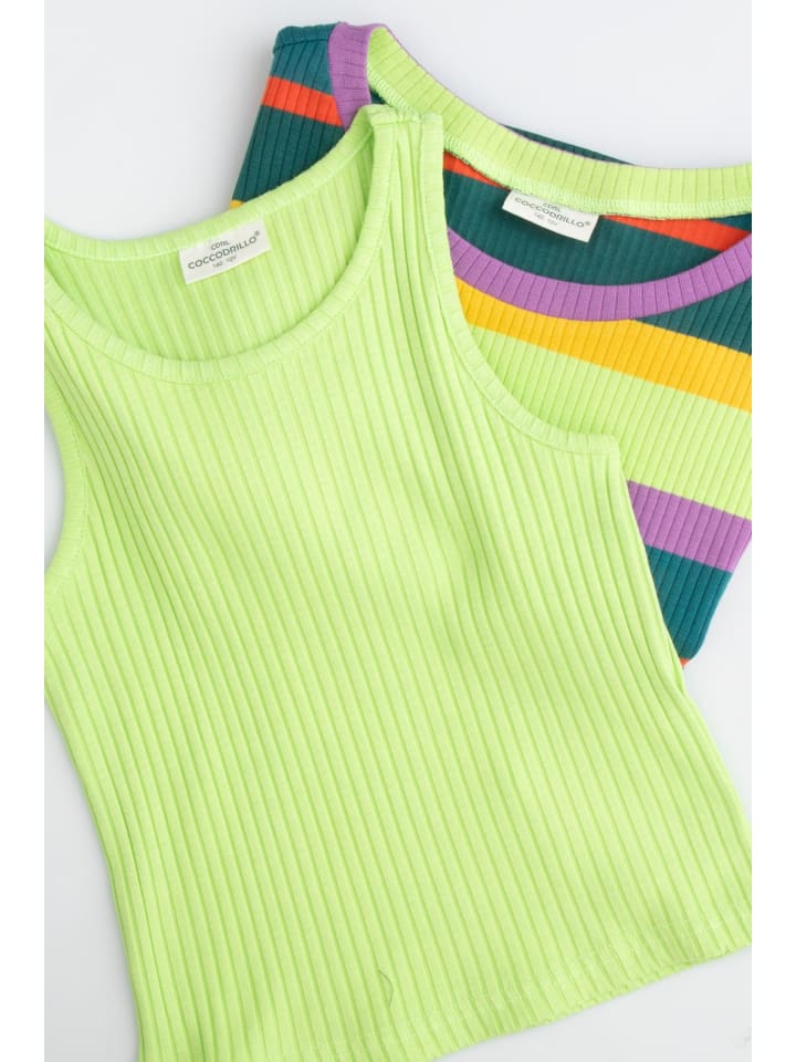 Откройте для себя радость красок с нашей ребристой футболкой для девочек. Разноцветные полоски зеленого, фиолетового, желтого и красного оттенков создают яркий и энергичный образ, который идеально подойдет для любого случая. Короткие рукава и круглый вырез горловины обеспечивают комфорт и свободу движений, что делает ее идеальным выбором для теплых дней.