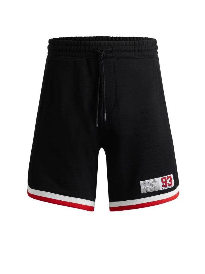 Свободные шорты HUGO из французского трикотажа с двухцветной тесьмой и логотипом в студенческом стиле. Приобретая этот продукт, вы вносите важный вклад в устойчивое выращивание хлопка в Африке и защиту нашей природы. Целью проекта «Хлопок, произведенный в Африке» является защита окружающей среды и улучшение условий жизни африканских фермеров, выращивающих хлопок.