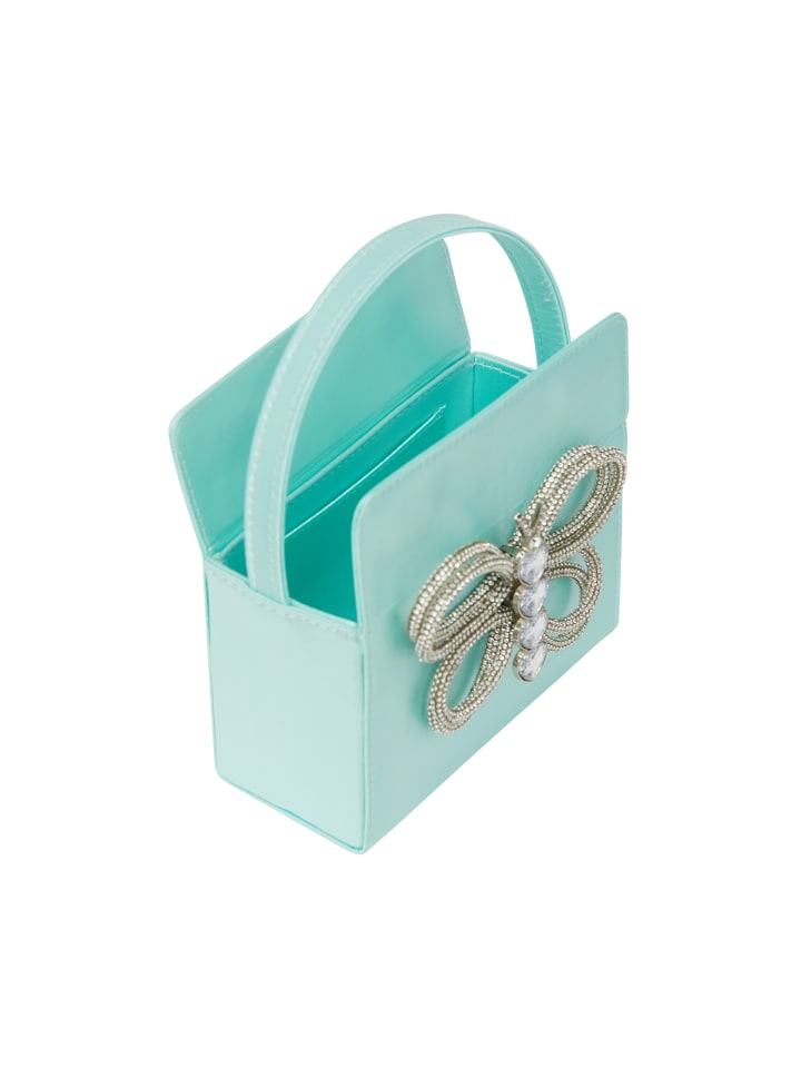 Ощутите изысканность с этой структурированной прямоугольной сумочкой с дизайном, вдохновленным бабочкой. Изготовленная с замысловатыми металлическими деталями и сверкающими украшениями, верхняя ручка добавляет элегантности для удобства переноски. Этот вечерний аксессуар с внутренним карманом, застежкой на кнопке и игривым мотивом в виде животного идеально подходит для официальных случаев.
