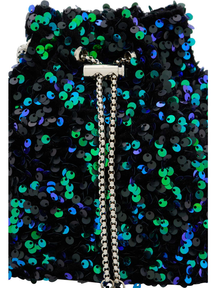 Откройте для себя эту стильную сумку-ведро, предназначенную для элегантных случаев, демонстрирующую шикарный однотонный узор. С удобной застежкой-шнурком и гладким цепочным ремешком, она предлагает как функциональность, так и изящество. Внутренний карман обеспечивает практичное хранение, а мерцающая текстура возвышает ваш образ, делая ее идеальной для любого изысканного мероприятия.