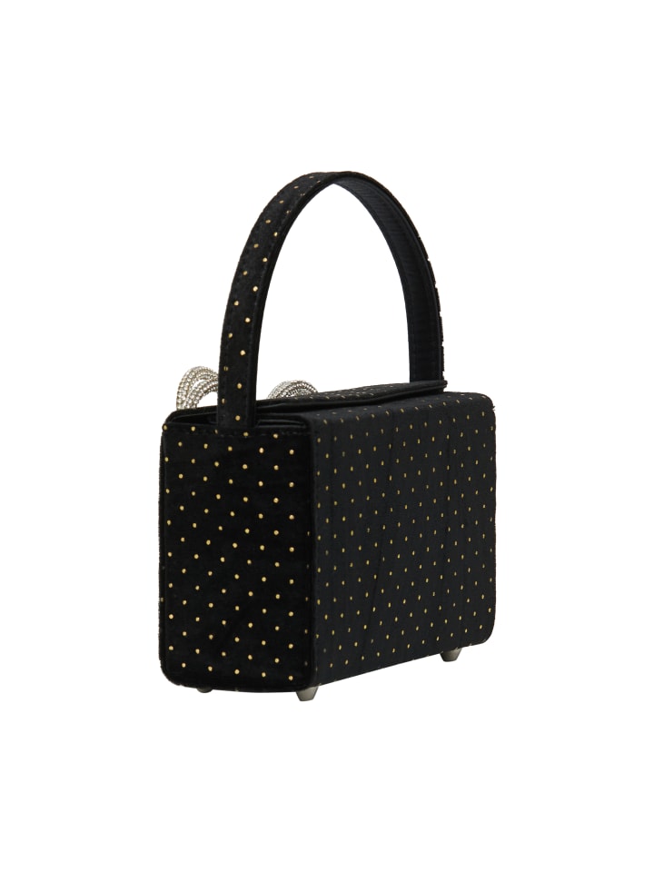 Откройте для себя изысканный аксессуар со структурированным силуэтом и шикарной верхней ручкой для удобного ношения. Украшенная замысловатым мотивом бабочки, украшенная сверкающими камнями, эта сумочка излучает элегантность. Благодаря нижним заклепкам для устойчивости, застежке на кнопке и внутреннему карману она идеально подходит для вечерних мероприятий.