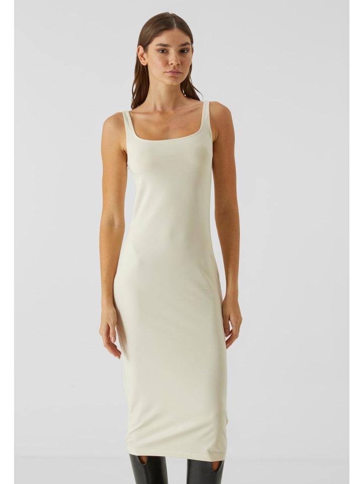 Женское базовое платье с длинными рукавами из хлопкового трикотажа поражает своей простой элегантностью и универсальностью. Облегающий крой подчеркивает силуэт и обеспечивает стильный внешний вид, а квадратный вырез придает дизайну современный вид. Эластичная ткань обеспечивает комфорт при ношении и свободу движений — идеально подходит для повседневной носки или особых случаев. Благодаря длине 3/4 платье отлично подойдет для разных сезонов и легко сочетается с аксессуарами. Непреходящая необходимость для женщин, следящих за модой и ценящих стиль и комфорт. - Мода – это самовыражение через одежду