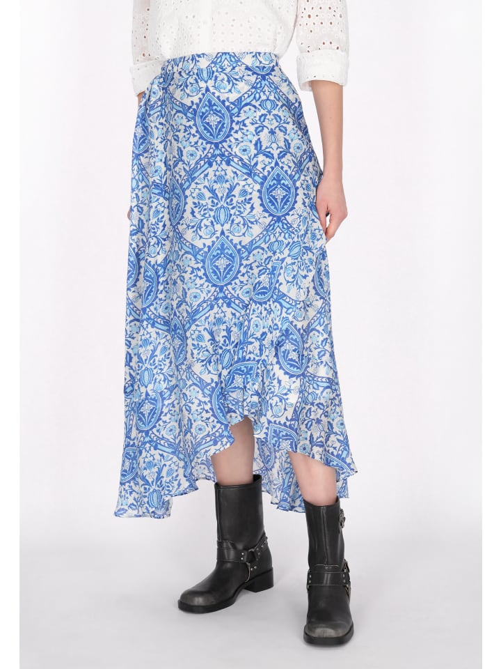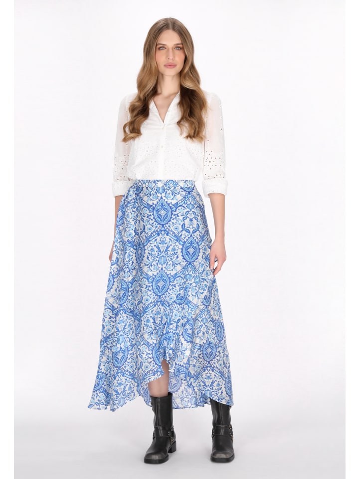 - Юбка-обертка миди стандартного кроя с расклешенной и эластичной талией