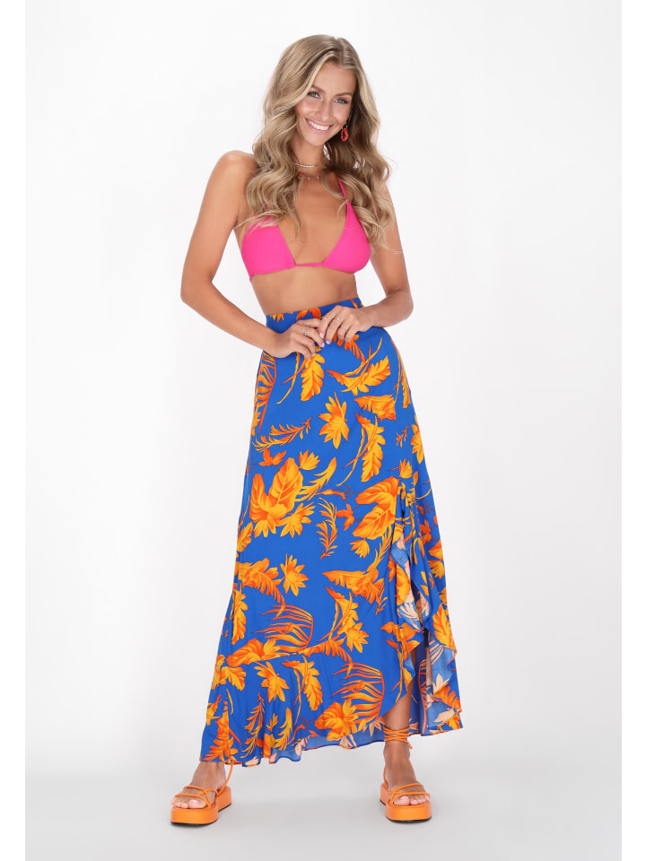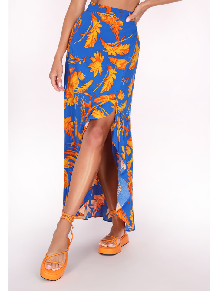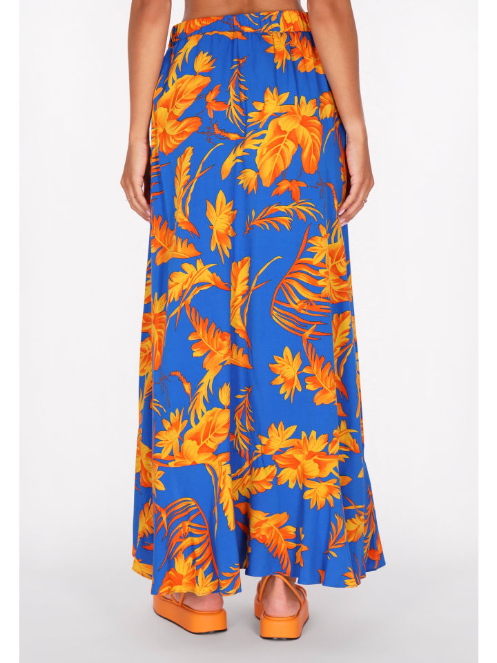 Представляем элегантную асимметричную юбку с высоким разрезом для свободы движений. Эта юбка классического кроя имеет длину миди и расклешенный оборчатый подол, что придает ей нотки бохо-стиля. Эластичный пояс обеспечивает удобную посадку, а цветочный принт добавляет нотку непринужденной элегантности. Идеально подходит для любителей повседневной моды или как часть стильной коллекции Back To School. - Асимметричная юбка миди классического кроя с эластичной талией и оборкой по низу