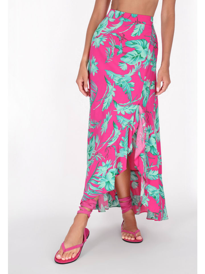 Представляем элегантную асимметричную юбку с высоким разрезом для свободы движений. Эта юбка классического кроя имеет длину миди и расклешенный оборчатый подол, что придает ей нотки бохо-стиля. Эластичный пояс обеспечивает удобную посадку, а цветочный принт добавляет нотку непринужденной элегантности. Идеально подходит для любителей повседневной моды или как часть стильной коллекции Back To School. - Асимметричная юбка миди классического кроя с эластичной талией и оборкой по низу