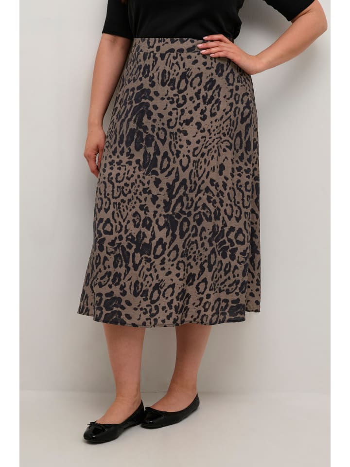 Юбка длиной до колена KAFFE curve, цвет major brown/black leopard