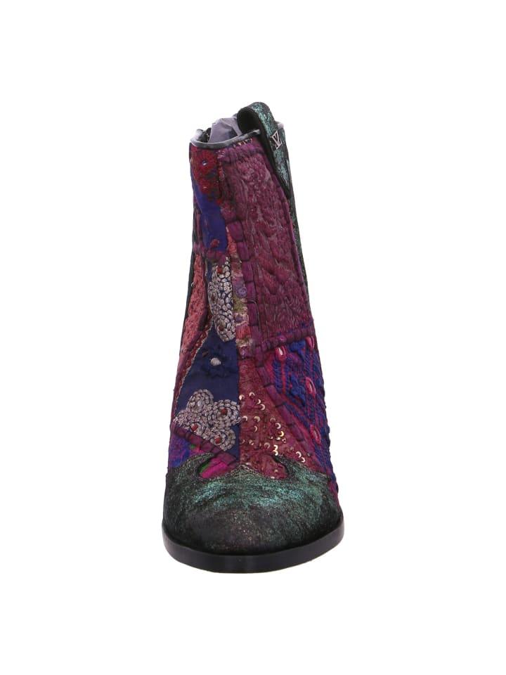 Добавьте в свой гардероб оригинальную обувь — эти оригинальные и стильные ботильоны. Каждая пара обуви уникальна, и каждая пара отличается от других. Верх из кожи украшен обрезками ткани, которые местные женщины в Бхудже (Индия) традиционно перерабатывают в красочные «произведения искусства». Это ремесло также называется DANKE или AARI. Такая обработка делает каждую модель обуви уникальной! Поэтому вышивка может отличаться от представленной на фотографиях. Застежка-молния позволяет легко надевать их, а ботильоны имеют текстильную подкладку и прочную кожаную стельку. Каблук высотой 6 см, подошва изготовлена из прочной резины.