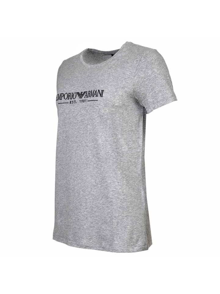 Женская футболка в стиле «Loungewear» от бренда EMPORIO ARMANI. Изготовлено из эластичного хлопкового трикотажа с логотипом на груди, круглым вырезом и классическим кроем. - Женская футболка EMPORIO ARMANI - Классический крой