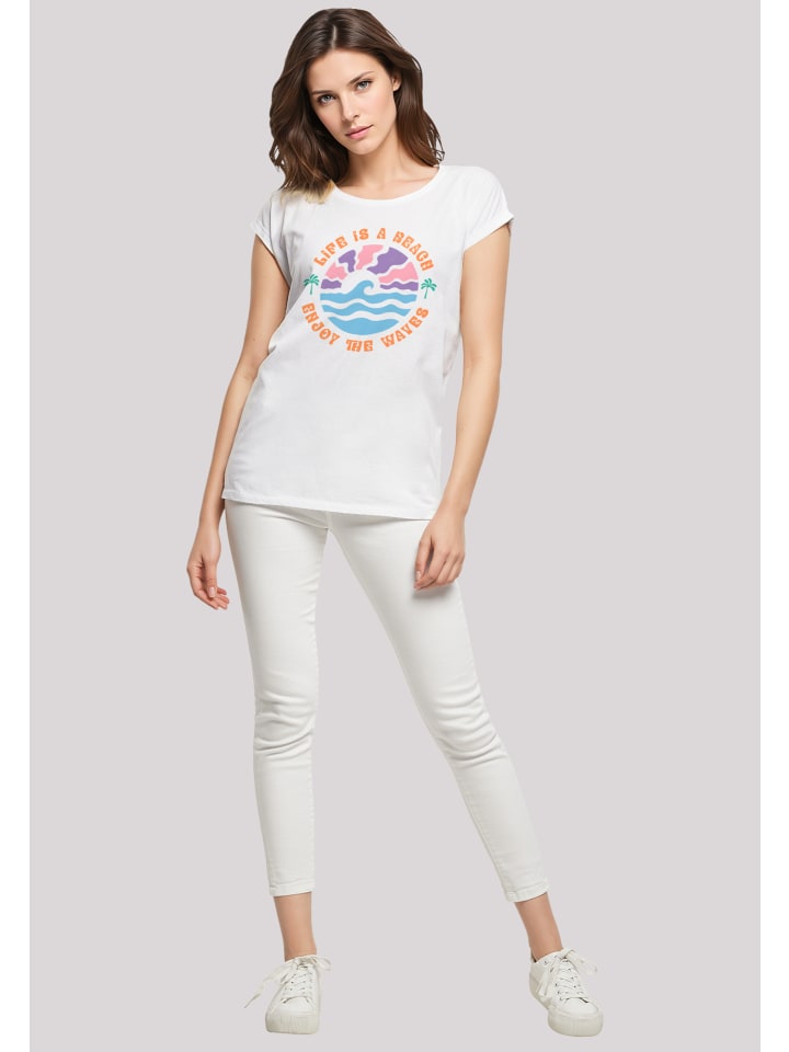 Футболка из летней коллекции, повседневная базовая вещь на каждый день, удлиненный крой и укороченные рукава, очень мягкая хлопковая ткань с высоким комфортом при носке, Life Is A Beach Enjoy The Waves