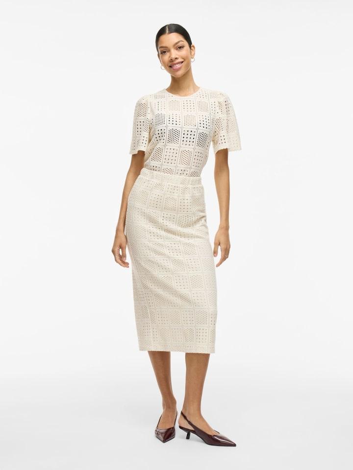 ---- ЮБКА МИДИ VINOVIRA HW Женская трикотажная юбка миди Vila с узором из квадратных отверстий и эластичным поясом ----/ Изделие соответствует размеру. / Материал: 70% полиэстер, 30% хлопок / Крой: Стандартный крой / Застежка: Без застежки 8749 / Инструкции по уходу: Машинная стирка при 30°C