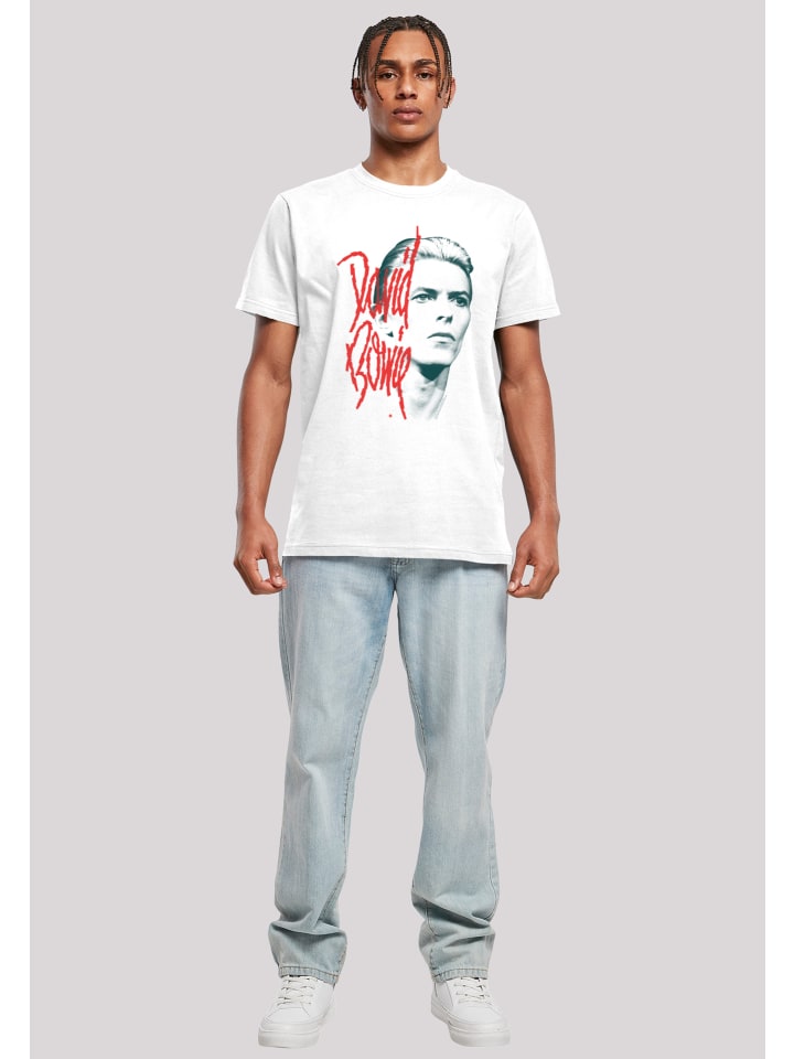 Дэвид Роберт Джонс, известный как Дэвид Боуи, был английским певцом, автором песен и актёром. Боуи — одна из самых известных фигур в музыкальной индустрии и считается одним из самых влиятельных музыкантов 20-го века. Получил признание критиков и музыкантов, особенно за свое новаторское творчество в 1970-х годах. Его карьера была отмечена переосмыслением и визуальной презентацией, а его музыка и сценическое мастерство оказали значительное влияние на популярную музыку. - Официально лицензированная футболка Дэвида Боуи