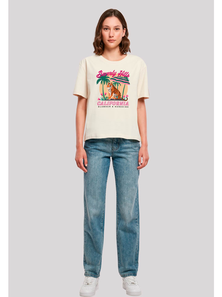Футболка из летней коллекции, футболка свободного покроя для женщин, ребристый круглый вырез, удобная и универсальная, Beverly Hills California Glamour Summer