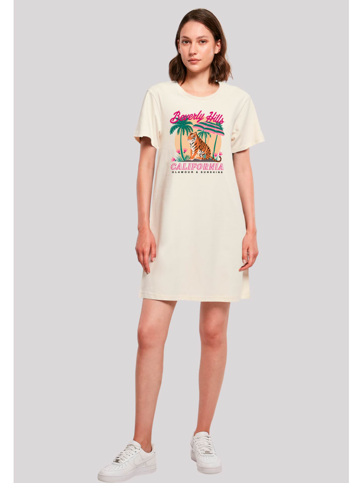 Платье из летней коллекции, простое женское платье-футболка из хлопка, слегка расклешенный А-силуэт для идеальной фигуры, удобный свободный крой и короткие рукава, Beverly Hills California Glamour Summer
