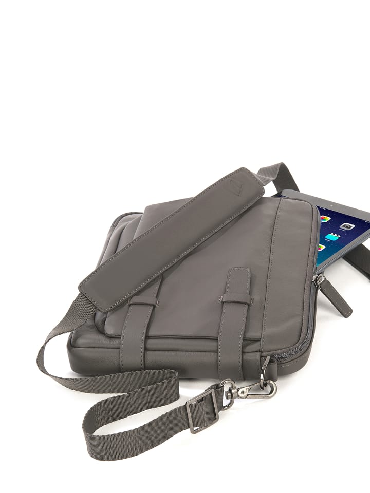 Сумка унисекс через плечо с застежкой-молнией. два открытых внутренних кармана. отсутствуют внешние карманы. регулируемый и съемный кожаный плечевой ремень. отсутствует ручка. внутреннее отделение. Внешний материал: Внутренний материал: Полиэстер. Размеры: 27x22x5,5 см. Модное изделие 27x22x5,5 см