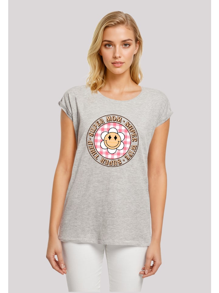 Мама Маме на День Матери в подарок. Базовая повседневная вещь на каждый день. Длинный крой и укороченные рукава. Очень мягкая хлопковая ткань с высоким комфортом при носке. День матери Супер уставшая мама Ретро Цветок Ромашка Смайлик