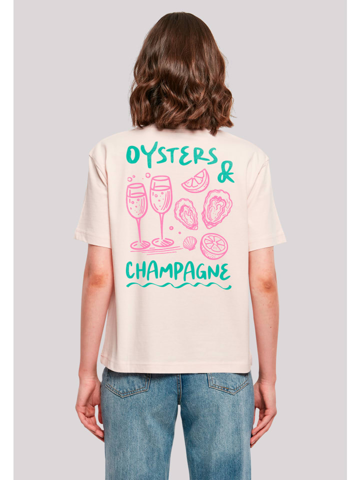 Футболка из летней коллекции, футболка свободного покроя для женщин, ребристый круглый вырез, удобная и универсальная, Oysters And Champagne