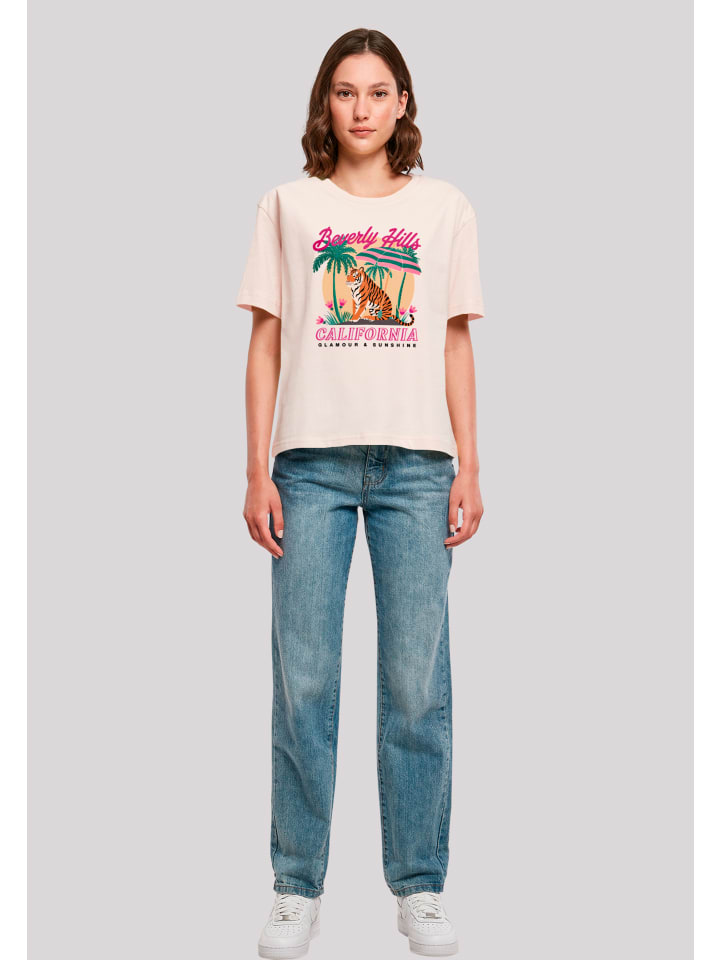 Футболка из летней коллекции, футболка свободного покроя для женщин, ребристый круглый вырез, удобная и универсальная, Beverly Hills California Glamour Summer