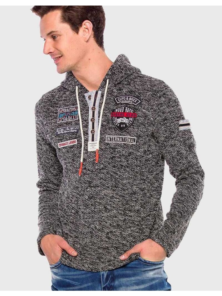 Эта толстовка от бренда Cipo \u0026 Baxx для мужчин впечатляет своим великолепным внешним видом и высоким качеством изготовления. Сочетайте его со всеми своими нарядами и будьте модными всегда и везде. Модель имеет уютный капюшон, который легко регулируется с помощью шнурка. Пестрый дизайн дополнен нашивками и пуговицами спереди, что делает его яркой изюминкой. — Уютная толстовка Cipo \u0026 Baxx для мужчин