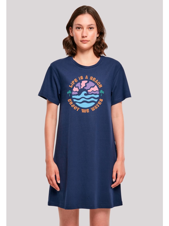 Платье из летней коллекции, простое женское платье-футболка из хлопка, слегка расклешенный А-образный крой для отличной фигуры, удобный свободный крой и короткие рукава, Life Is A Beach Enjoy The Waves