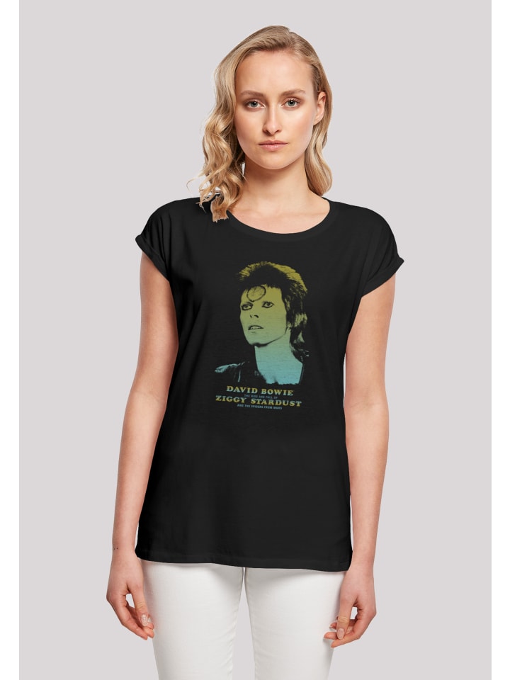 Дэвид Роберт Джонс, известный как Дэвид Боуи, был английским певцом, автором песен и актёром. Боуи — одна из самых известных фигур в музыкальной индустрии и считается одним из самых влиятельных музыкантов 20-го века. Получил признание критиков и музыкантов, особенно за свое новаторское творчество в 1970-х годах. Его карьера была отмечена переосмыслением и визуальной презентацией, а его музыка и сценическое мастерство оказали значительное влияние на популярную музыку. - Официально лицензированная футболка Дэвида Боуи