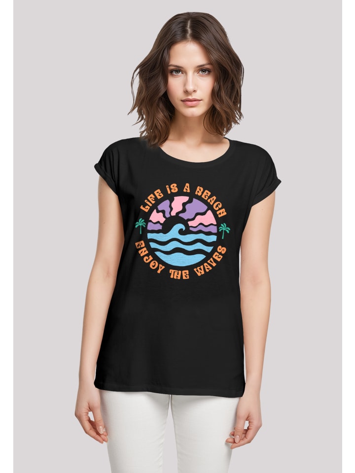 Футболка из летней коллекции, повседневная базовая вещь на каждый день, удлиненный крой и укороченные рукава, очень мягкая хлопковая ткань с высоким комфортом при носке, Life Is A Beach Enjoy The Waves