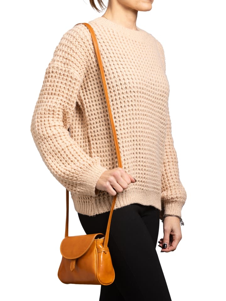 Женская сумка через плечо с магнитной застежкой. отсутствуют внутренние карманы. отсутствуют внешние карманы. регулируемый кожаный плечевой ремень. отсутствует ручка. внутреннее отделение. Внешний материал. Внутри подкладка из хлопка. Размеры: 14x18x7 см. Сделано в Италии 14x18x7 см