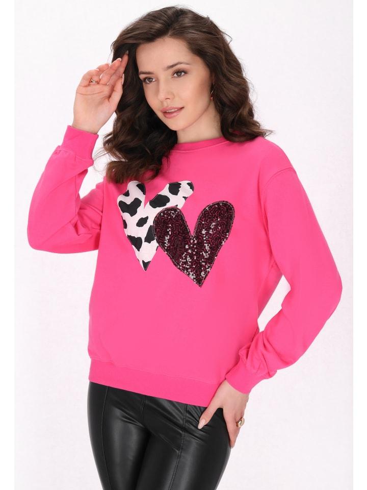 Откройте для себя эту модную толстовку из нашей коллекции Fashion Look, разработанную с обычным кроем и спущенными плечами. Она имеет круглый вырез, длинные рукава и забавные сердечки - один с текстурированным принтом в виде животных, а другой украшен пайетками для дополнительного стиля. Идеально подходит для повседневной носки, сочетая в себе удобство и романтический стиль.