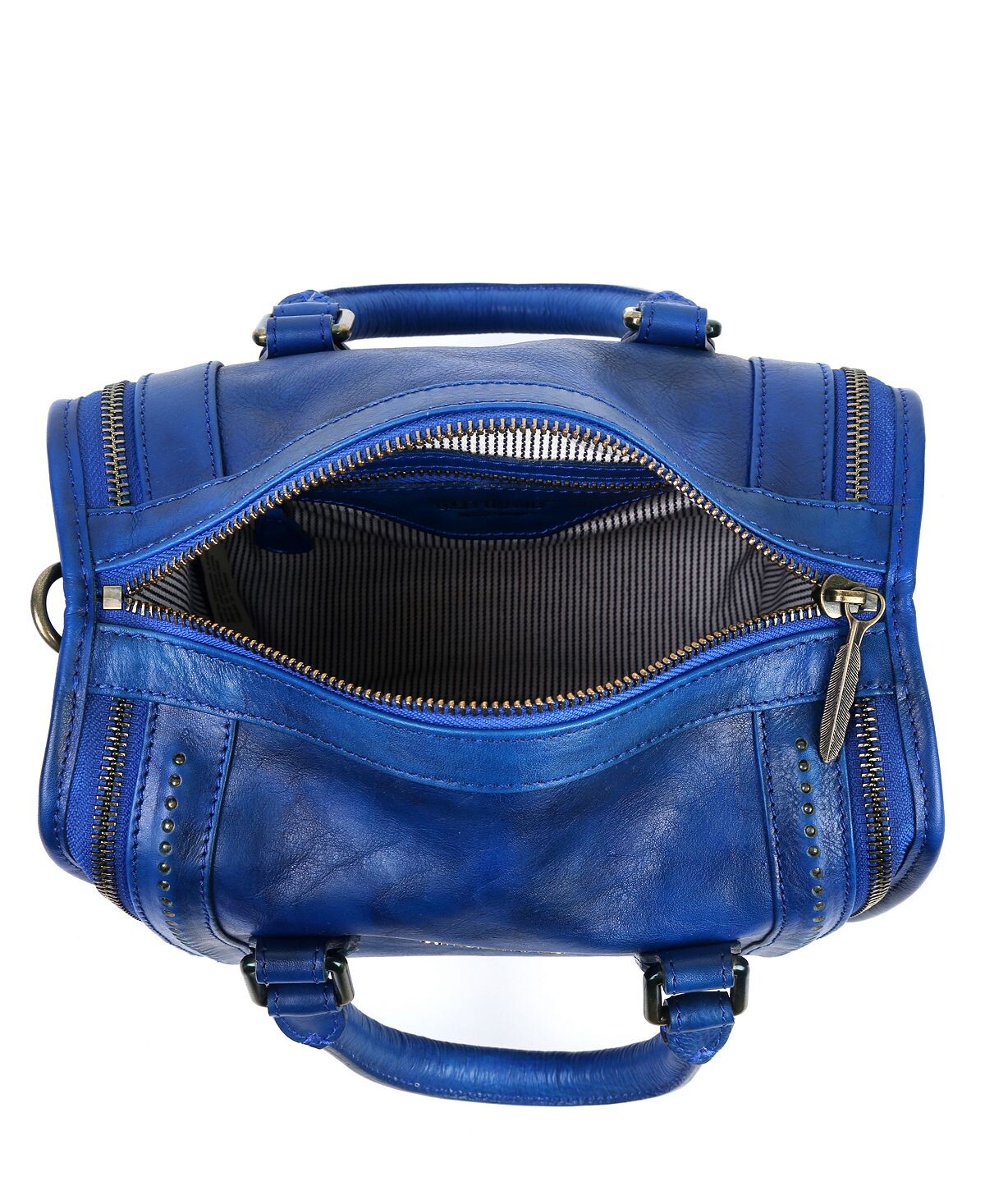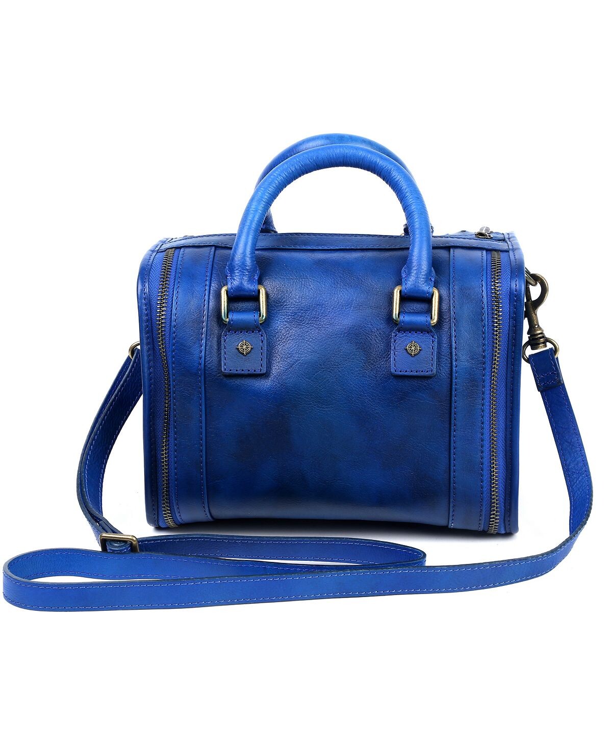 Фирменная эмалированная фурнитура сияет на фоне натуральной кожи нашей сумки через плечо Mini Trunk, напоминающей винтажный силуэт сумки.