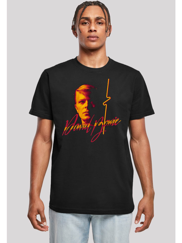 Дэвид Роберт Джонс, известный как Дэвид Боуи, был английским певцом, автором песен и актёром. Боуи — одна из самых известных фигур в музыкальной индустрии и считается одним из самых влиятельных музыкантов 20-го века. Получил признание критиков и музыкантов, особенно за свое новаторское творчество в 1970-х годах. Его карьера была отмечена переосмыслением и визуальной презентацией, а его музыка и сценическое мастерство оказали значительное влияние на популярную музыку. - Официально лицензированная футболка Дэвида Боуи