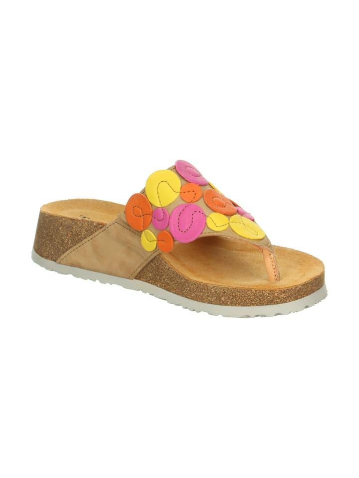 Пробковая стелька анатомической формы делает разделитель пальцев ног KOAK универсальным изделием. Так же, как и вышитые искусной декоративной строчкой круги на Think! Придайте мюлям модный вид. Благодаря особо мягкой коже наппа и нежной кожаной подкладке ничто не сдавливает и не мешает комфорту при ношении. Это делает KOAK вашим любимым спутником в жаркие дни.