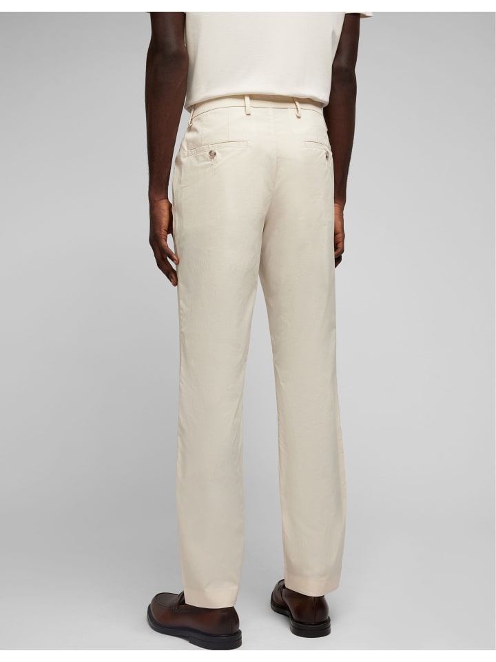 Откройте для себя удобные брюки-чиносы из сверхлегкой смеси хлопка с эластаном. Эти брюки идеально сочетают в себе комфорт и стиль и станут неотъемлемой частью вашего гардероба. Эти брюки прямого зауженного кроя имеют высокоэластичный пояс для дополнительного комфорта и подчеркивают фигуру. Застегивается на пуговицу с логотипом спереди и потайную молнию, что обеспечивает надежный и аккуратный вид. Французские карманы обеспечивают функциональность и элегантность, а задние карманы с окантовкой и застежкой на пуговицы обеспечивают дополнительное место для хранения вещей. Эти брюки с культовой ленточкой на заднем кармане и вышивкой излучают изысканность и уникальность. В размере 34/34 ширина стопы составляет 36 см, что обеспечивает стройный и приталенный вид без ущерба для комфорта. - Прямой крой