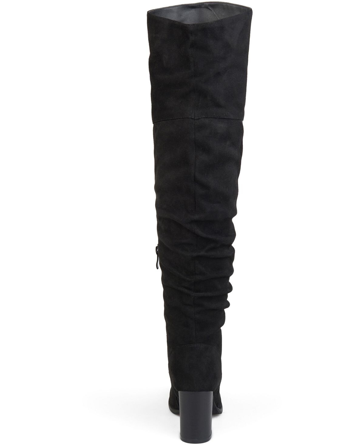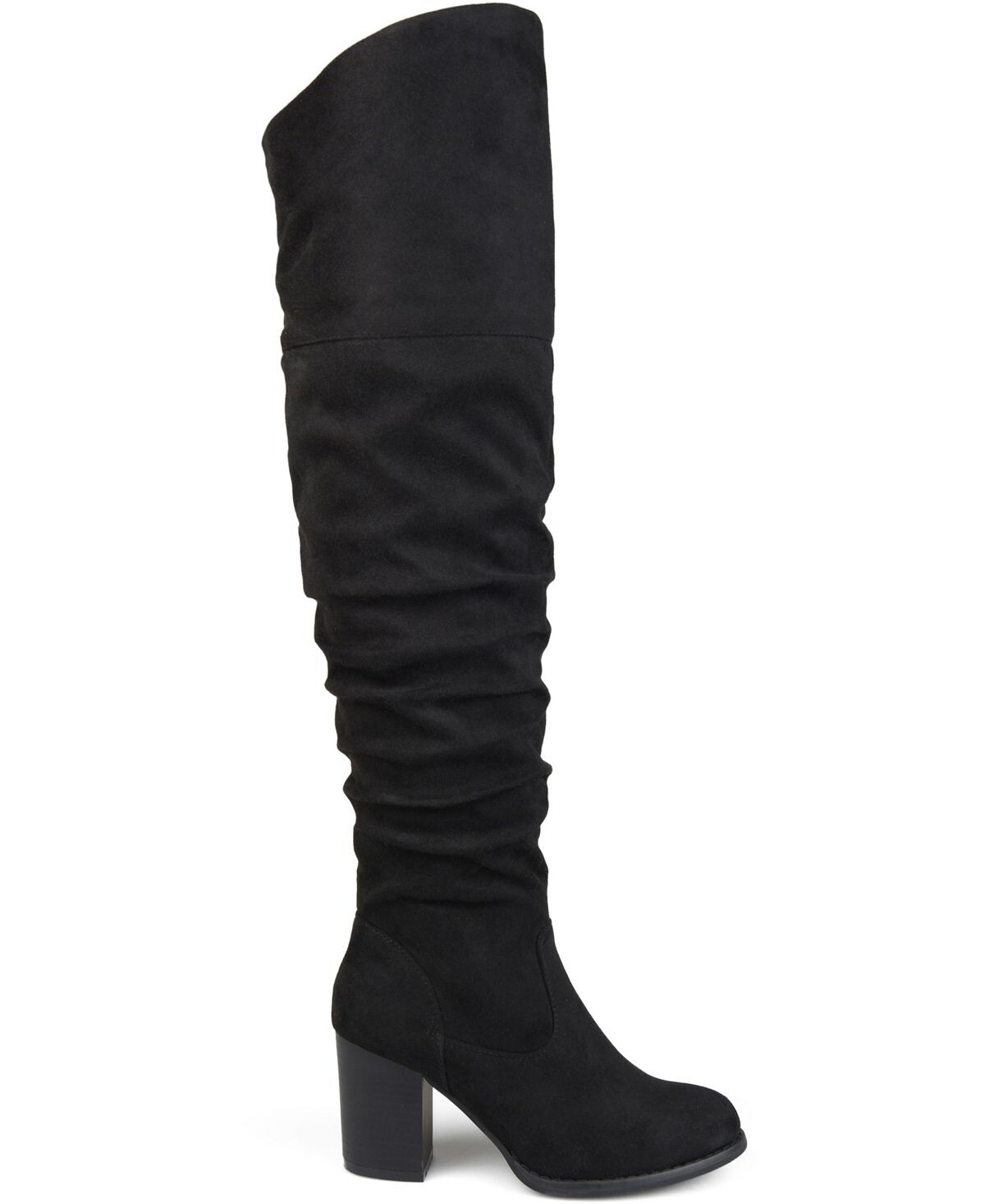 Сапоги выше колена со сборками от Journee Collection имеют верх из мягкой искусственной кожи (полиуретана, полиэстера), возвышающийся над коленями, с рельефными союзками, создающими стильные детали. Закругленный носок и массивные высокие каблуки завершают образ.