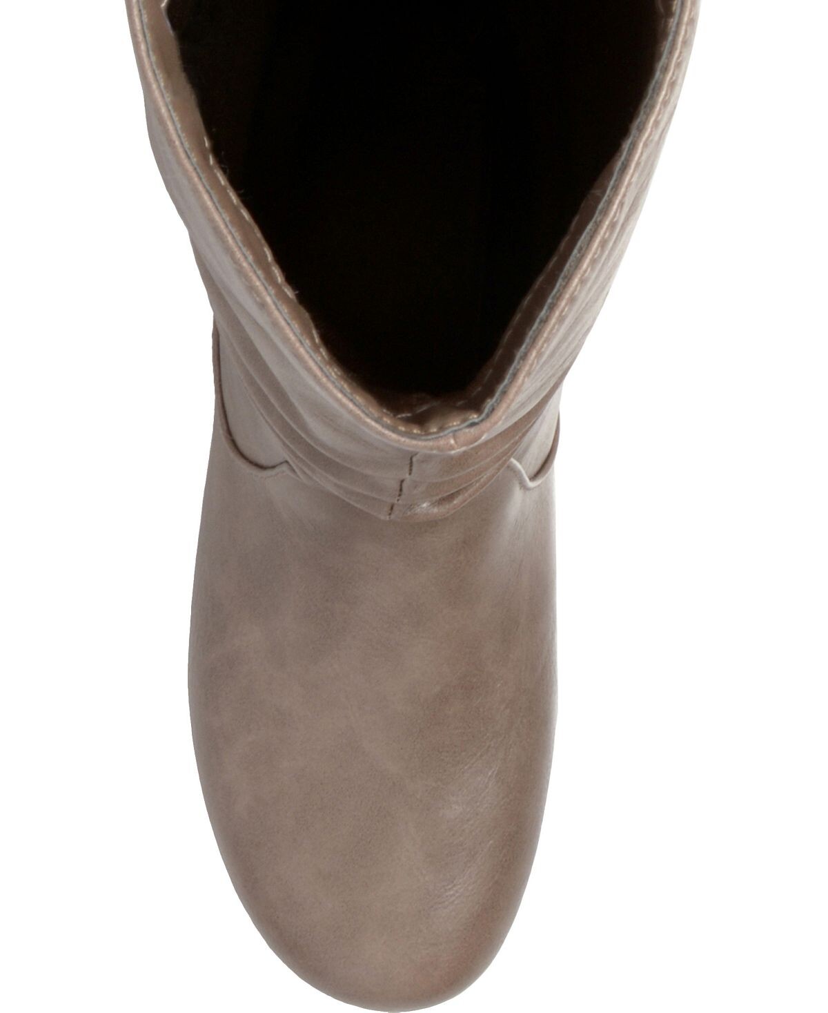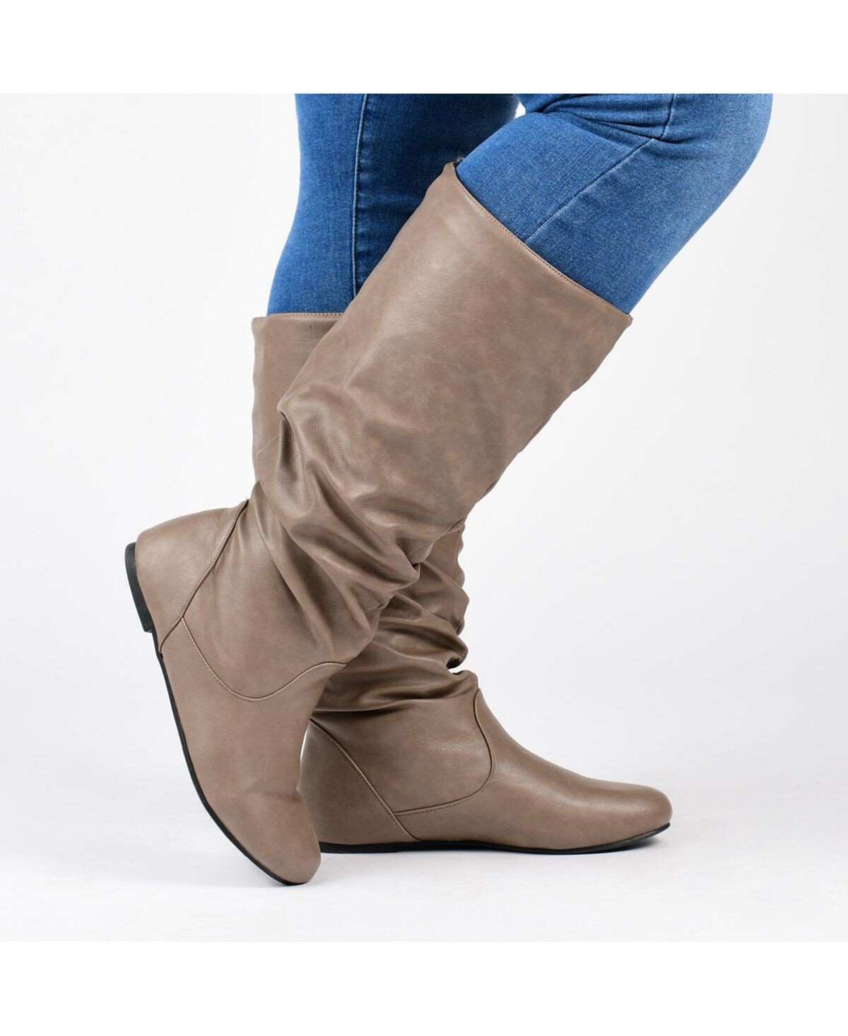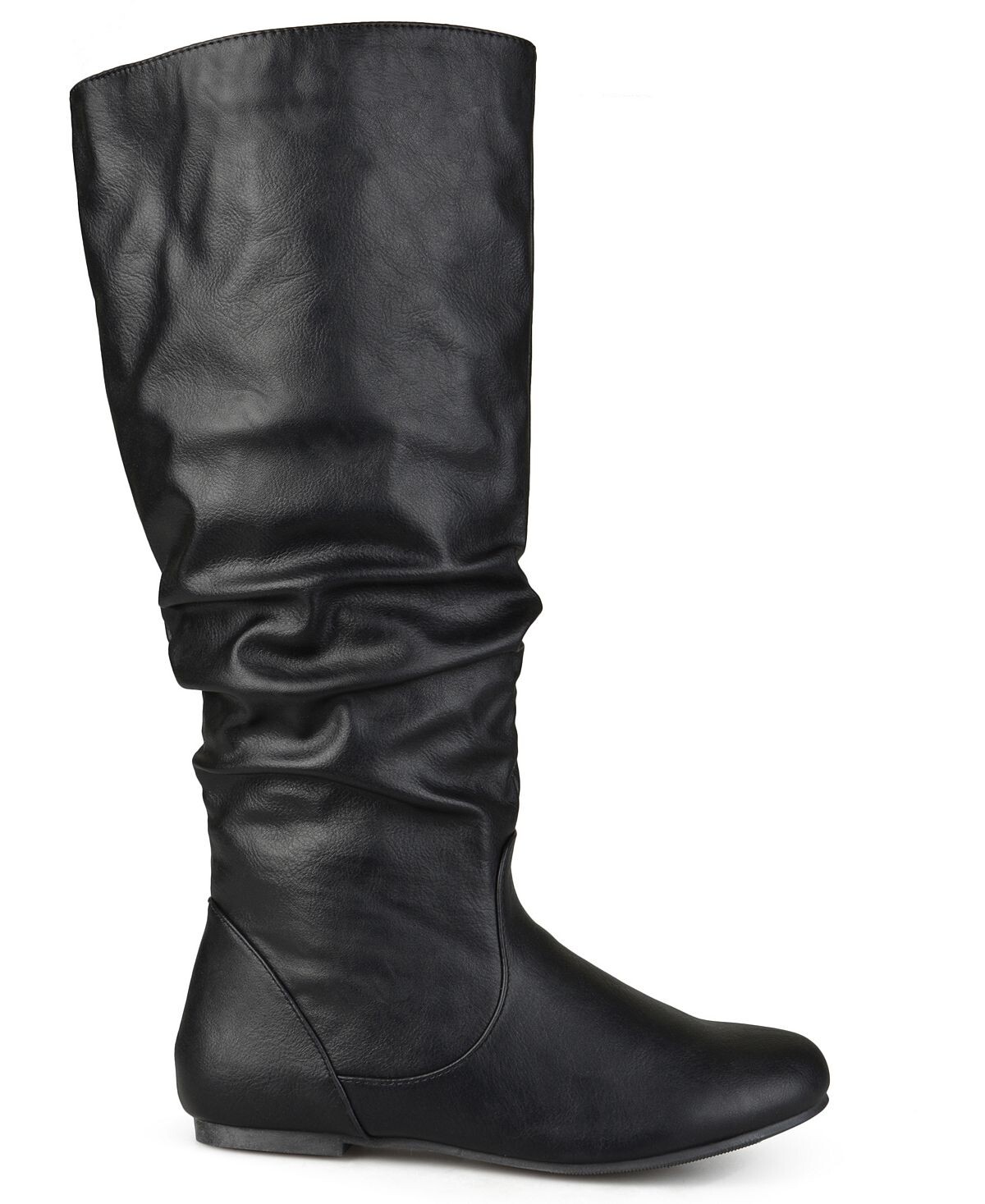 Подчеркните классический стиль в женских ботинках для верховой езды на плоской подошве от Journee Collection. Эти очень широкие ботинки из искусственной кожи с утонченным дизайном с напуском и дополнительным пространством в области икр создают стиль ботинок с широкой икрой.