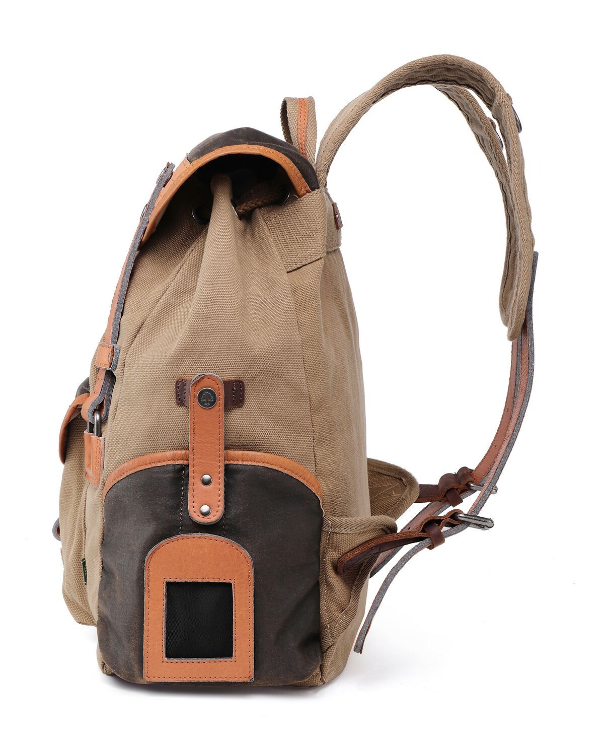 Прочный потертый холст и вставки из натуральной кожи создают долговечный винтажный вид. Наш просторный двухцветный рюкзак Tapa легко вмещает множество карманов.