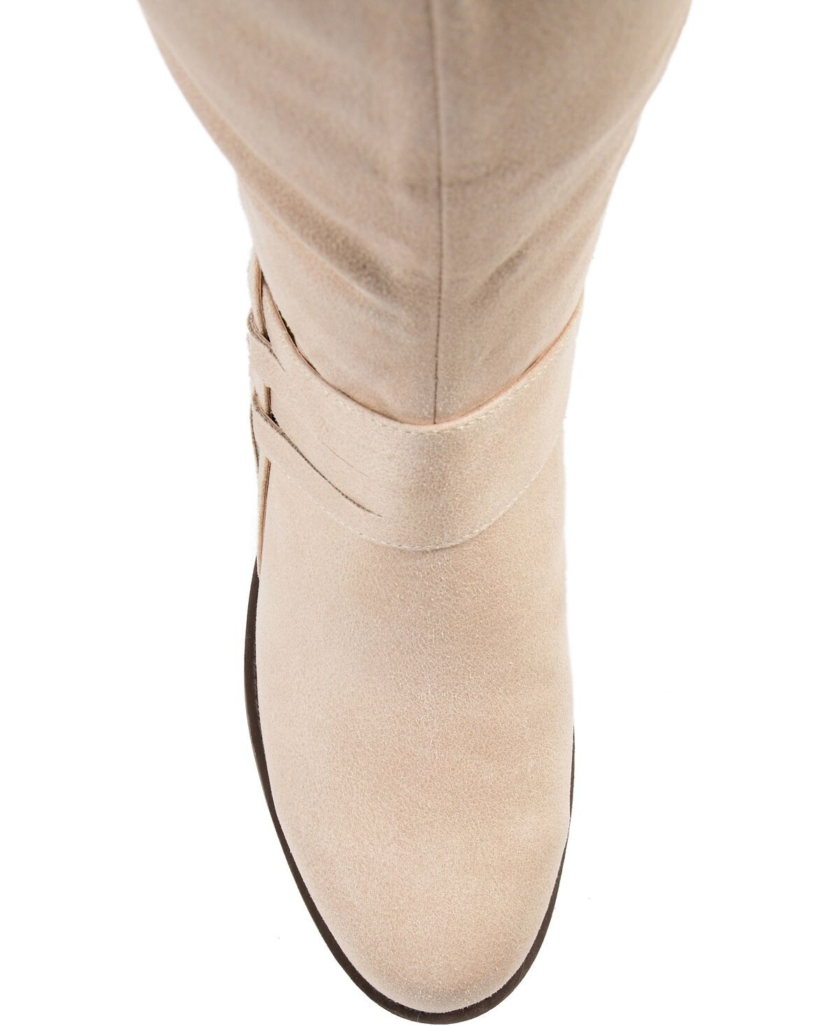 Создайте красивый зимний образ с широкими ботинками Meg от Journee Collection. Эти ботинки изготовлены из веганской замши со сложной тканой деталью снаружи. Модель высотой до колена и закругленный носок дополняют этот очаровательный дизайн.