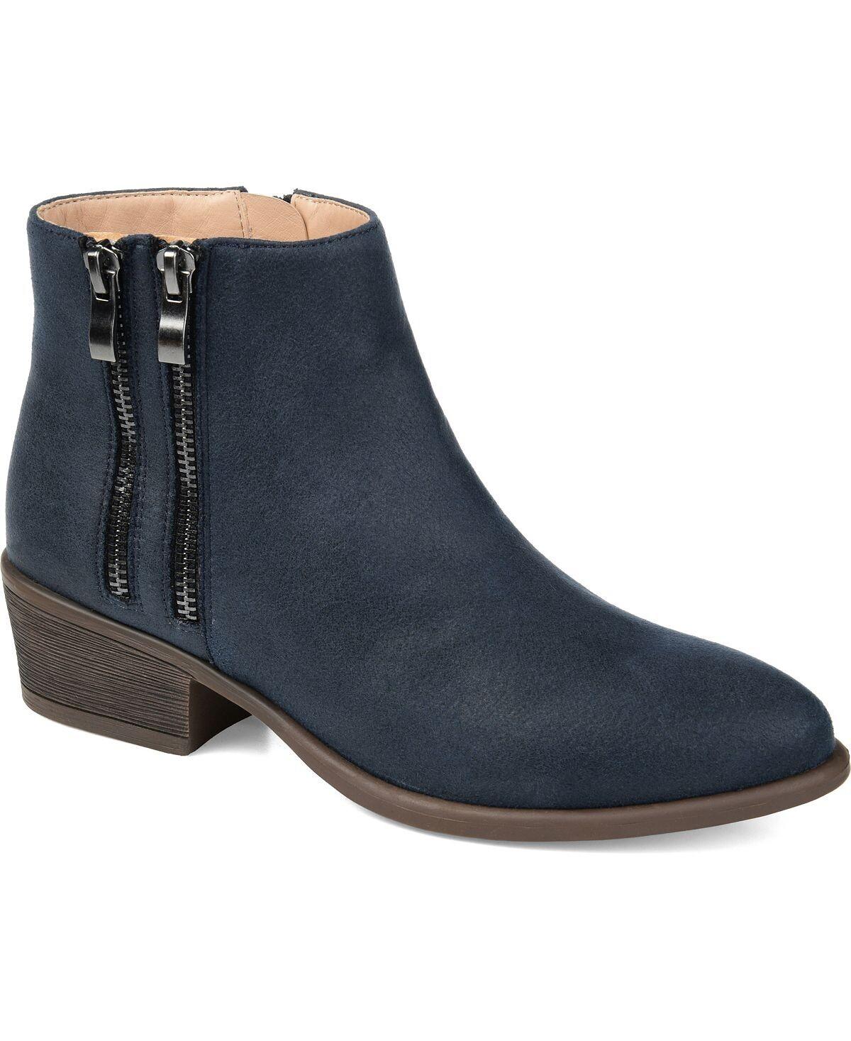 Сезон не закончится без ботинок Jayda от Journee Collection. Эти ботильоны из веганской замши с потертостями украшены двойной вертикальной молнией на внешней стороне ботильонов. Миндалевидный носок и идеальная высота каблука завершают этот дизайн.