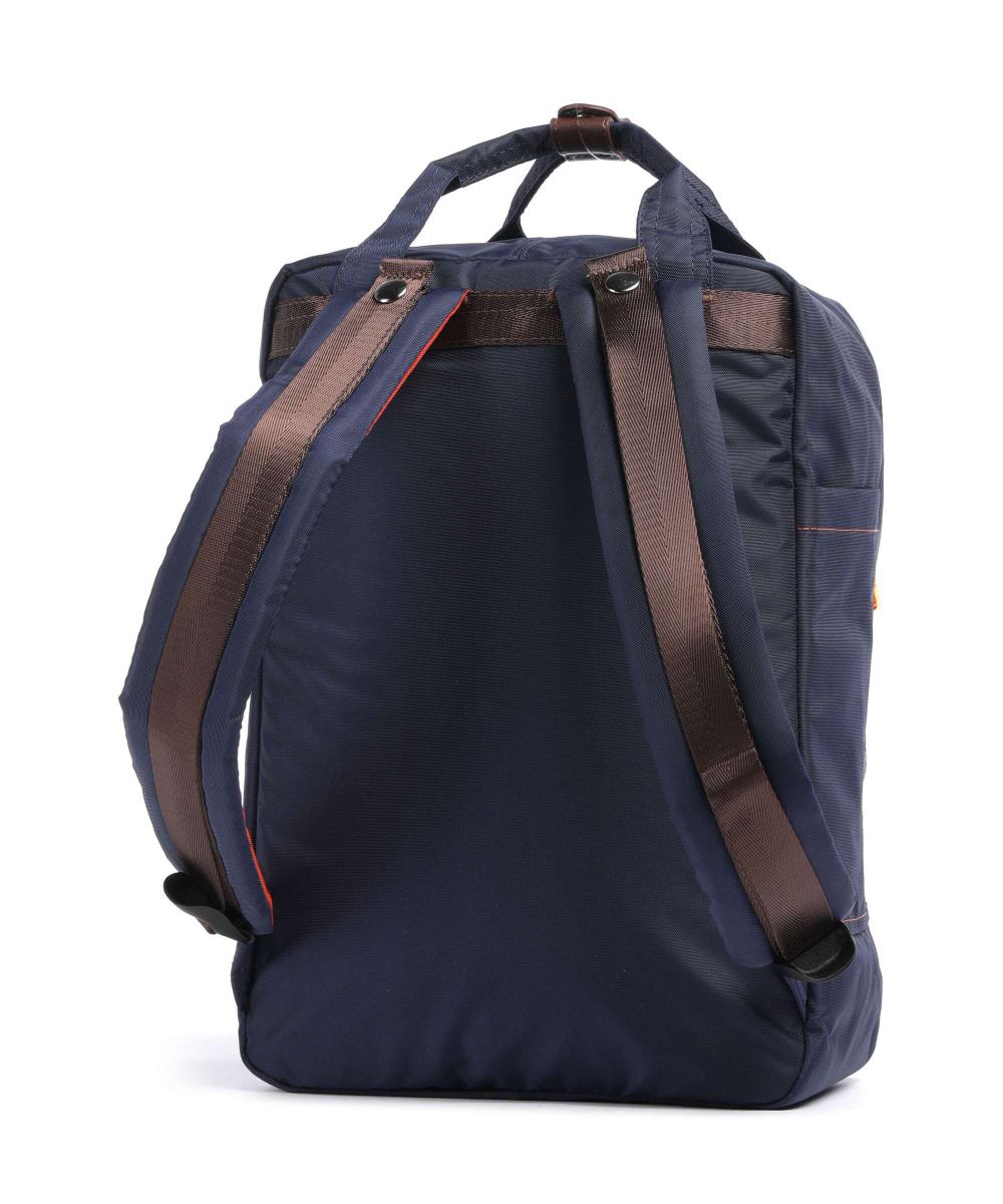 Подробности о продукте: Один карман на пряжке спереди. Два накладных кармана сбоку. Система переноски: контактная спинка. Мягкие лямки рюкзака. Закрывается на двухстороннюю молнию (скрытая молния). Две ручки для переноски. Полированная металлическая фурнитура золотистого цвета. Съемный кулон. Внутри: Подкладка с логотипом из полиэстера. Вместительное основное отделение, подходит для документов формата А4. Два отделения на молнии. Два накладных кармана. Мягкое отделение для ноутбука. Материал: нейлон. Отделение для ноутбука: подходит для ноутбуков до 14 дюймов. Размеры: прибл. 25 x 38 x 13 см (ширина x высота x глубина). Вес: 0,5 кг. Объем: 12 л.