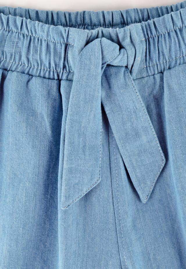 Описание товара: Детские брюки-кюлоты голубого цвета Бермуды Изготовлены из контролируемого органического хлопка Качество: тканый шамбре 4,5 унции Цвет: светло-голубой в крапинку Широкий эластичный пояс, утягивается, с декоративной лентой Два кармана в боковых швах Длина: примерно до икры Этикетка с логотипом sigikid Все ткани, используемые в наших детских шортах, сертифицированы в соответствии со стандартом Oeko-Tex Standard 100 для маркировки Confidence in Textiles