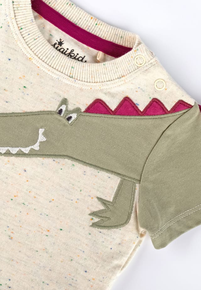 Описание товара: Футболка для малышей nöppchen Happy Crocodile, детская коллекция sigikid весна/лето С хлопком из контролируемого органического земледелия Качество: одинарный трикотаж прибл. 180 г/м² Естественные цвета с разноцветными узелками Мягкий воротник, шов на горловине закрыт Две кнопки на плече Аппликация в виде крокодила с 3-D зубцами на рукаве Съемная бирка коллекционера в виде крокодила Все ткани в наших детских рубашках сертифицированы на соответствие лейблу Confidence in Textiles Oeko-Tex Standard 100