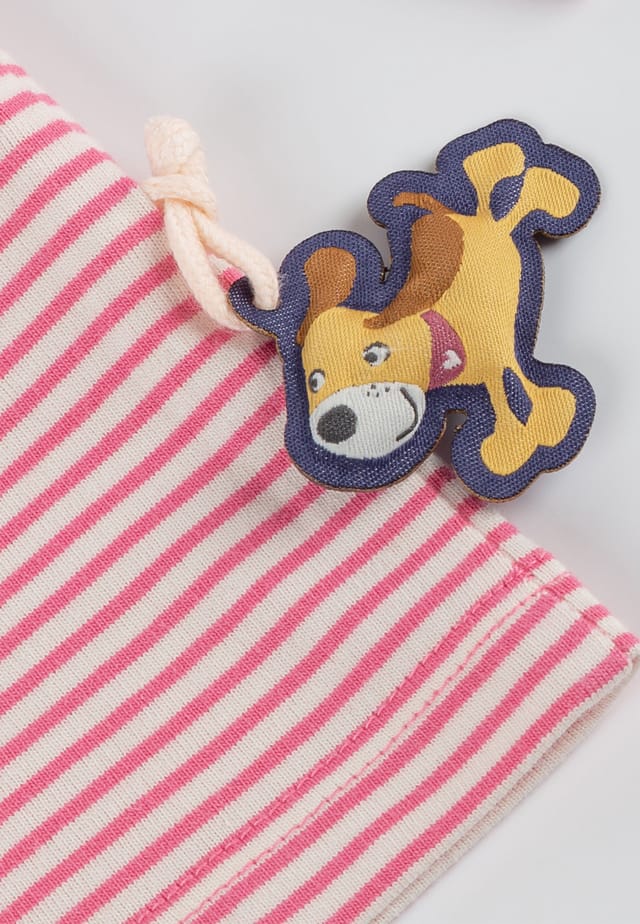 Аппликация, вышивка, принт: аппликация и вышивка собаки, напечатанный логотип sigikid