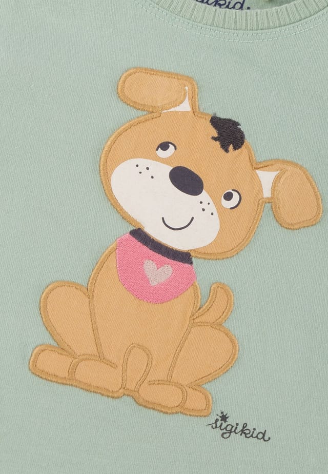 Аппликация, вышивка, принт: аппликация и вышивка собаки, напечатанный логотип sigikid