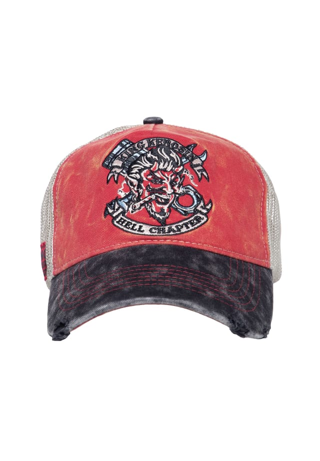 Кепка дальнобойщика в подержанном виде глава ада King Kerosin, красный