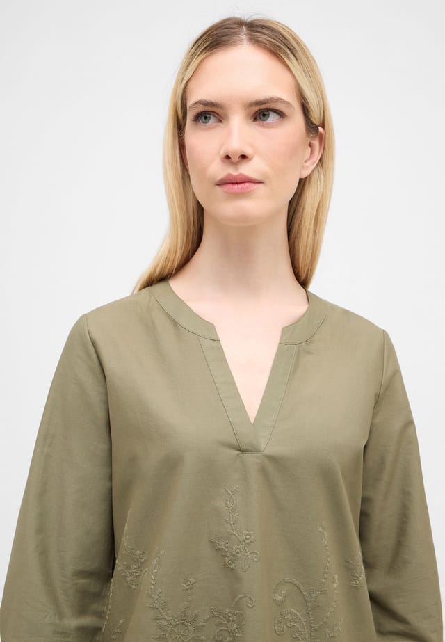 Описание товара: Кружево с люверсами — трендовый материал этого лета! Как следует из названия, этот модный тренд, также известный как broderie anglaise (английская вышивка), представляет собой ткань, украшенную небольшими вышитыми отверстиями. Наша однотонная, элегантно вышитая блузка без застежек с рукавом три четверти и вышивкой с люверсами отвечает требованиям женщин, ценящих качество и желающих быть модными. Изготовленная из 100% хлопка, она обеспечивает первоклассный комфорт, мягкая и дышащая. Воротник-стойка переходит в V-образный вырез, придавая этой модной вещи женственность. Подол волнистый благодаря кружеву с люверсами, что делает эту блузку LOOSE FIT настоящей приманкой для глаз. Для этой свободной блузки LOOSE FIT характерен непринужденный силуэт. Благодаря современной ширине в области талии и бедер она имеет особенно свободный крой. Длина нашей блузки без застежек составляет 62 см, а манжеты застегиваются на пуговицу. Для создания прохладного летнего образа с романтическим оттенком — заказывайте онлайн прямо сейчас! Особенности (маркеры): высококачественная ажурная вышивка чистый хлопок Рукава три четверти Фасон воротника: воротник-стойка Длина рукава: рукава 3/4
