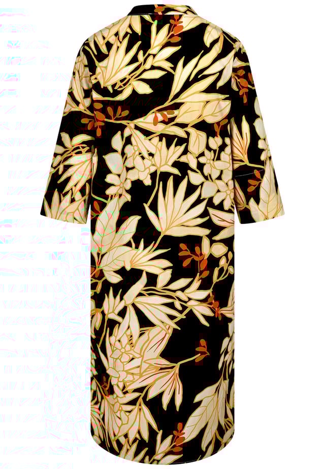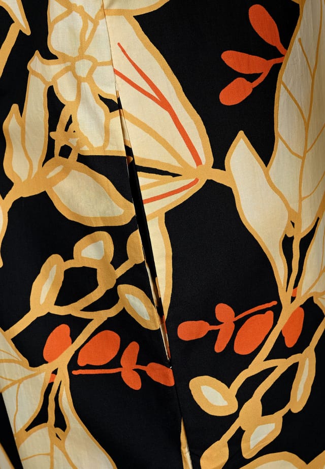 Описание товара: Смелая по цветовой гамме и летняя по выбору легких тканей, BICALLA представляет потрясающе красивое платье в этом сезоне. Легкая ткань из чистого, приятного для кожи хлопка приятна на ощупь и является идеальным выбором для теплых весенних и летних дней. Чистые линии делают образ одновременно вечно красивым и удобным. Узкий воротник-стойка с V-образным вырезом создает женственный, элегантный акцент. Цвета цветочного узора особенно красивы: нежный песочный в обрамлении теплого желто-коричневого тона и яркий оранжевый создают выразительный эффект на черном фоне. Платье, которое благодаря боковым карманам и разрезам по подолу также включает в себя практичные повседневные детали и может сочетаться как повседневно с кроссовками или сандалиями, так и элегантно с сандалиями или туфлями-лодочками.
