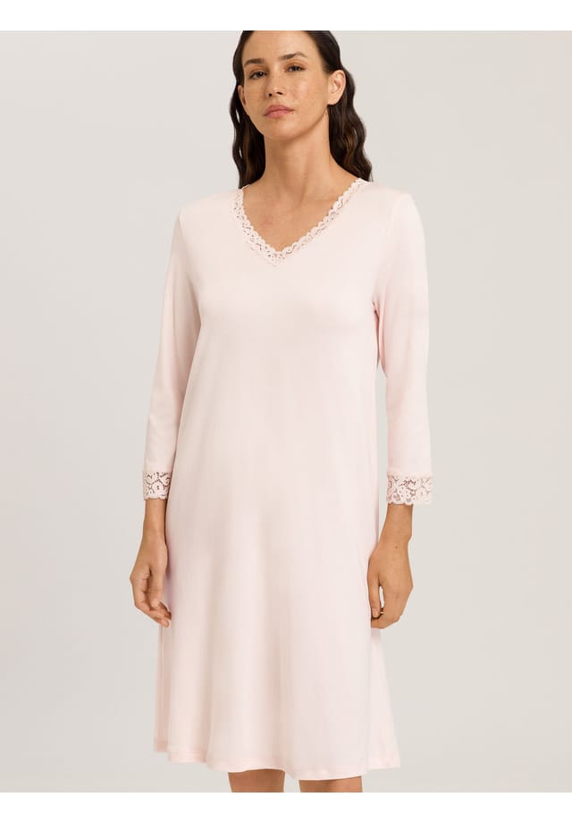 Описание товара: Хлопковая ночная рубашка с тонкими кружевными деталями: Мягко ниспадающий мерсеризованный хлопковый интерлок ощущается на коже удивительно мягким. Узкая кружевная полоса Textronic на V-образном вырезе и подгибе рукава придает ночной рубашке современный и стильный вид. Особенности : Длина 100 см с длинными рукавами С декоративным кружевом Мерсеризованный хлопок качества интерлок Информация о размере: Изделие идет размер в размер Длина: до колена Вырез: V-образный Длина рукава: рукава 3/4
